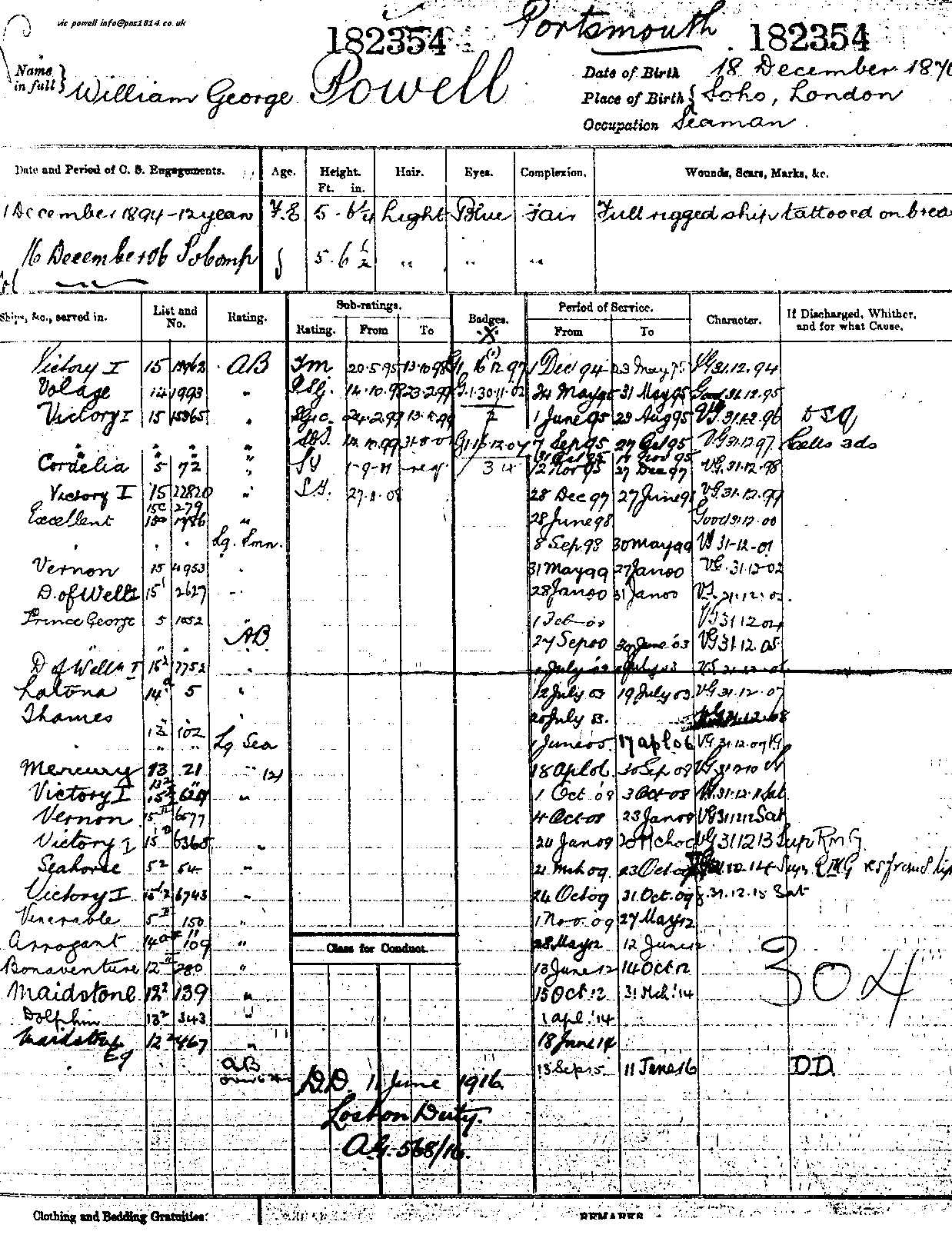 1912 and, after the ‘Commissioning’ on 18th Jun 1914 William Powell